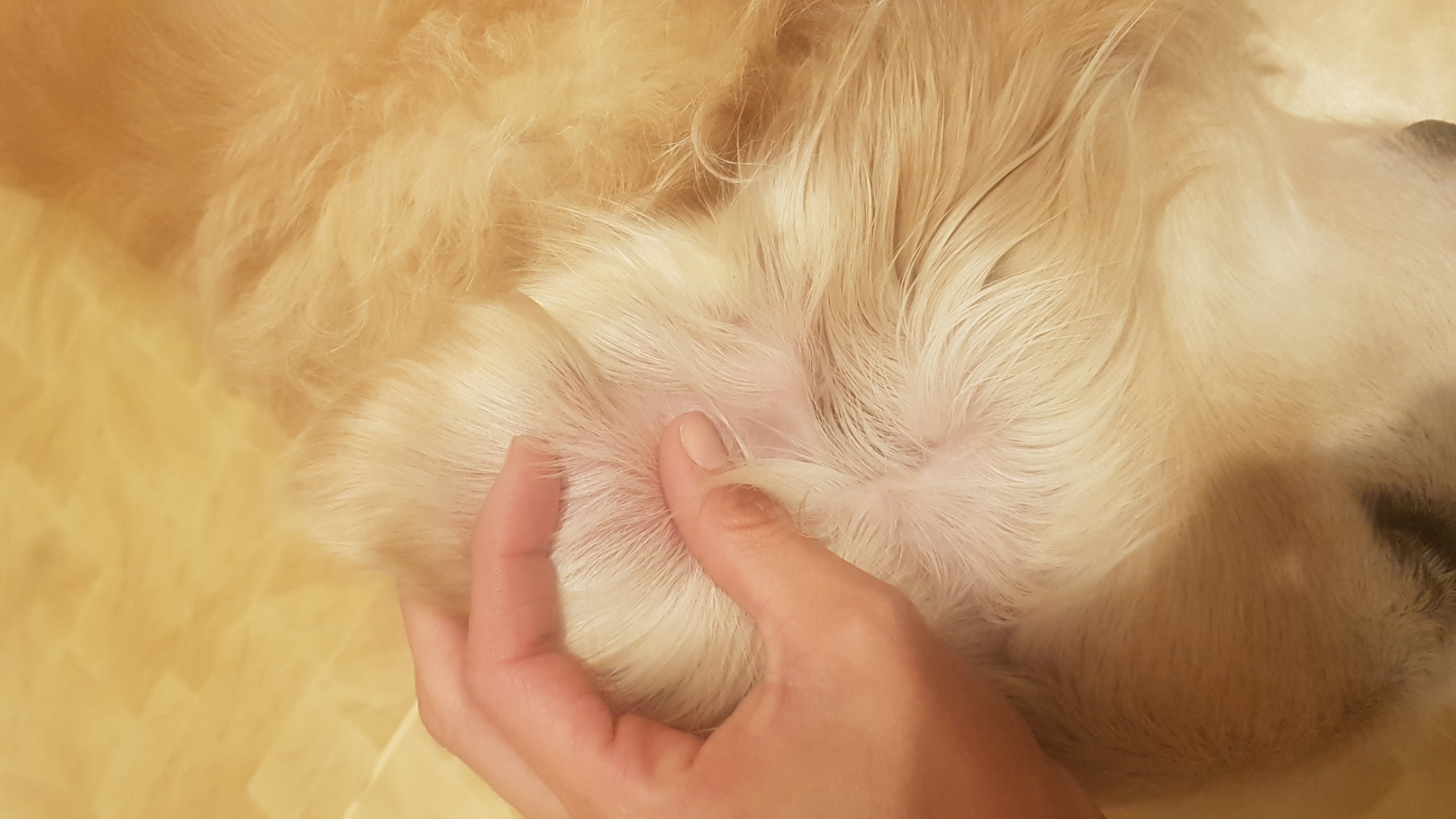 Dobrý den, Potřebuju prosím poradit. Mám 10ročního zlaťaka. Dnes odpoledne jsem si všimla na jeho uchu jakoby placatý polštářek s tekutinou. Polštářek se nachází cca uprostřed plandavého ucha. Můžete mi prosím poradit o co se jedná? Moc Děkuji. Viz. Na fotografii, mezi ukazováčkem a palcem... Skutečná velikost je 2cm x 2cm