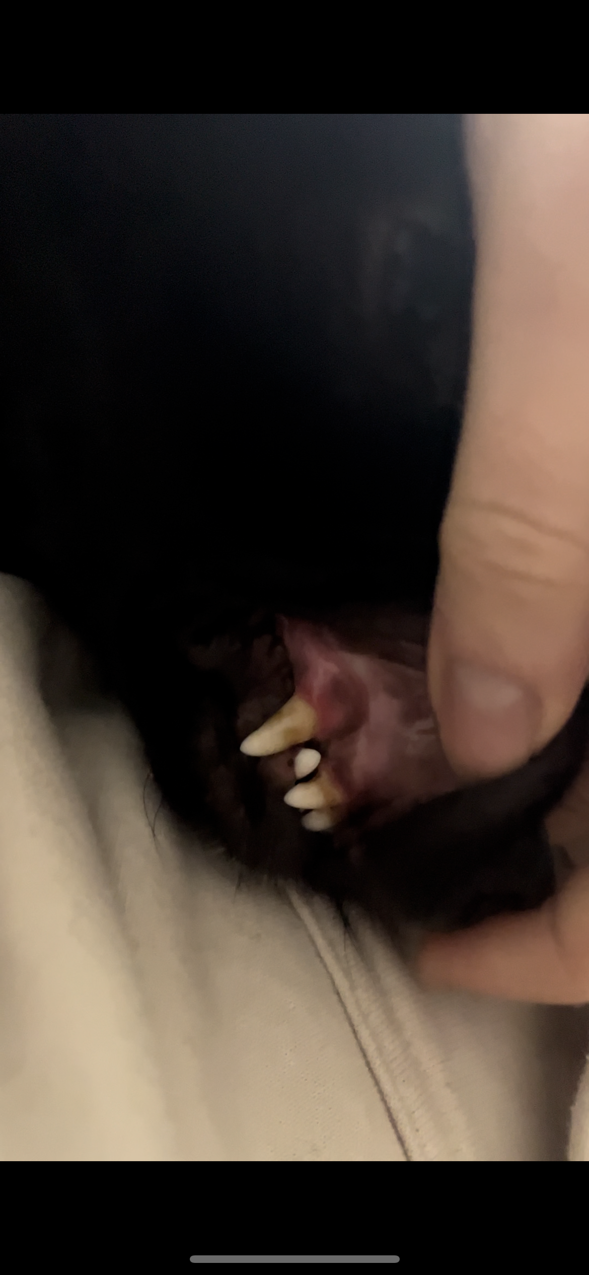 Dobrý den, mám 3 měsíce fenku z útulku - odebrána z přemnožené smečky v osadě na Slovensku (nyní jí jsou 8 měsíců) - zoubky měla již se zubím plakem/kamenem - veterinářka doporučila čistit, aby se to nehoršilo a nemusela na operaci. Jelikož teď žere pouze kvalitní granule, mám pocit, že se zuby nehorší, ale všimla jsem si, že má u špičáků lehké začervenání. Přikládám fotografii, mohl byste se prosím podívat, zda se jedná o akutní případ? Čištění zubů je náročné, vůbec se nenechá a je vidět, že z toho má velký stres. Pamlsky ani voňavá pasta nepomáhají. Doporučil byste mi prosím nějaký "fígl", zda existuje? :) Děkuji velice!