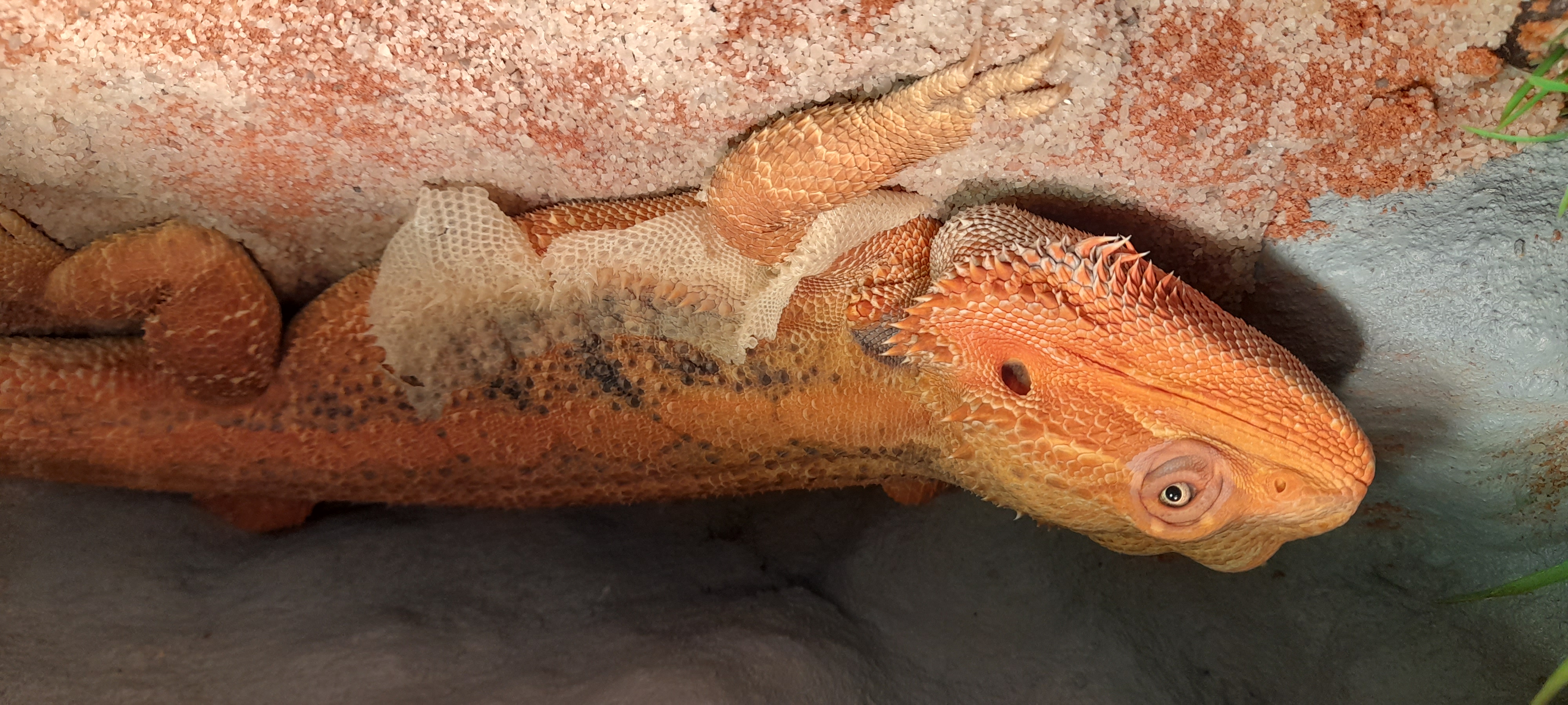 Dobrý den, mám agamu vousatou-samec. Už déle než měsíc postupně svleka kůži na různých místech. Teď se mu udělal světlý flek i přímo kolem oka(viz přiložené foto). Svlekaji agamy kůži i takhle přímo v očním okolí, nebo se jedná o nějaký problém a mám s ním raději k veterináři? Nechci nic podcenit, děkuji za odpověď. Balvínová Monika, Kolín