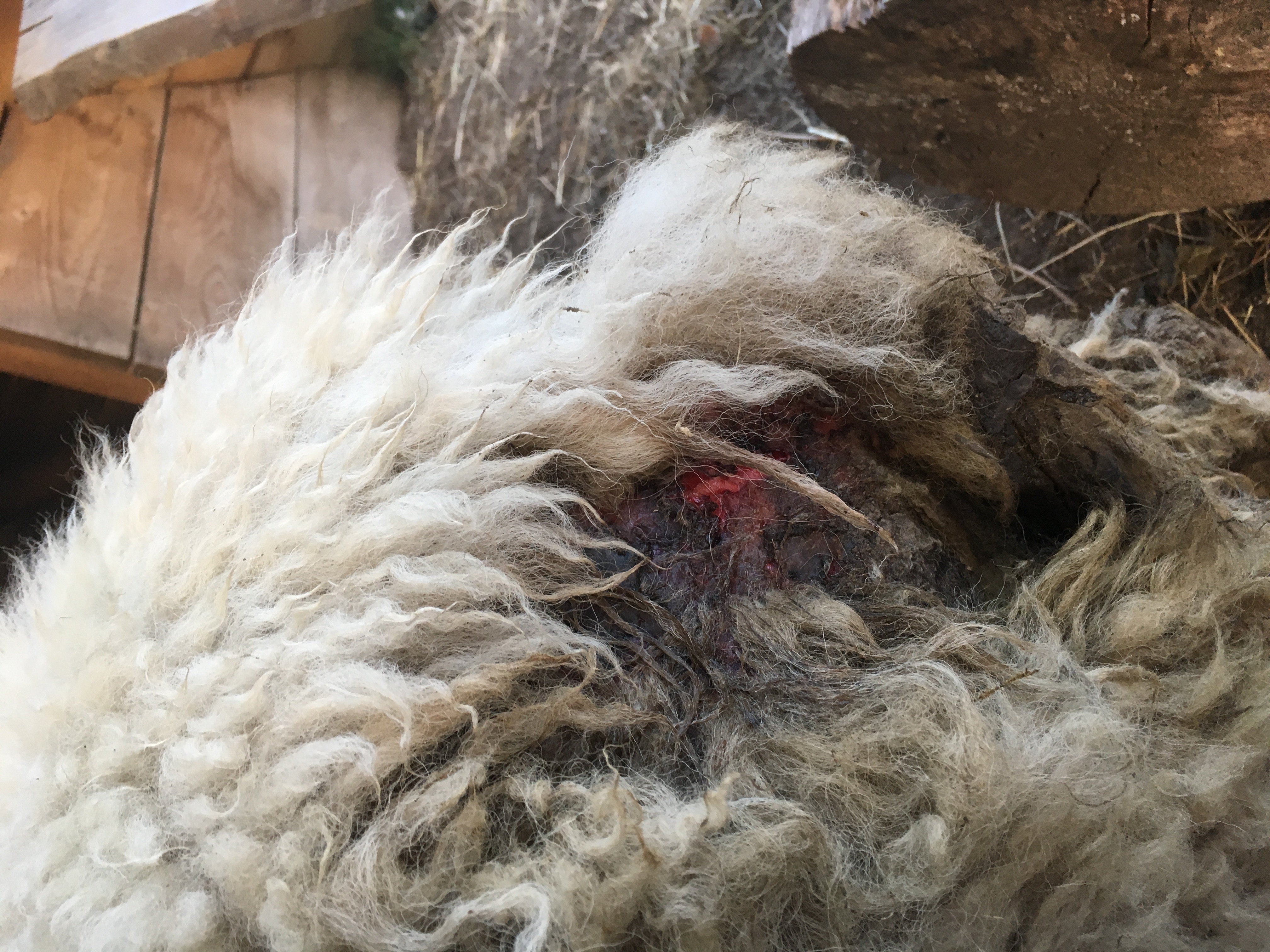 Ovce, po průjmu, zadek a okolí otevřená rana do masa, otekla