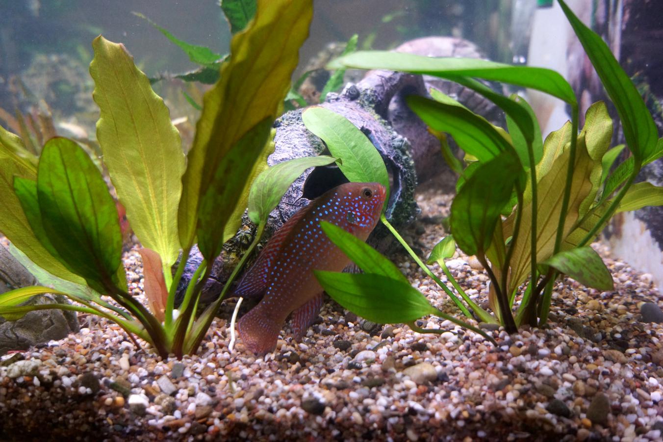 poměrně velkých rozměrů a do malých akvárií se nehodí, jeho menší kolega