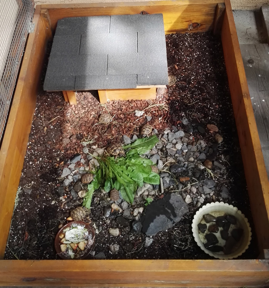 Pokud máte malou želvičku (do tří let), pak zvrchu zajistěte výběh sítem, čímž ji ochráníte proti případným predátorům - kočkám, psům, atp. Síto musí být dostatečně jemné a pevné, aby se skrze něj predátor nedostal, ale musí také umožňovat dostatečné proudění čerstvého vzduchu do výběhu.