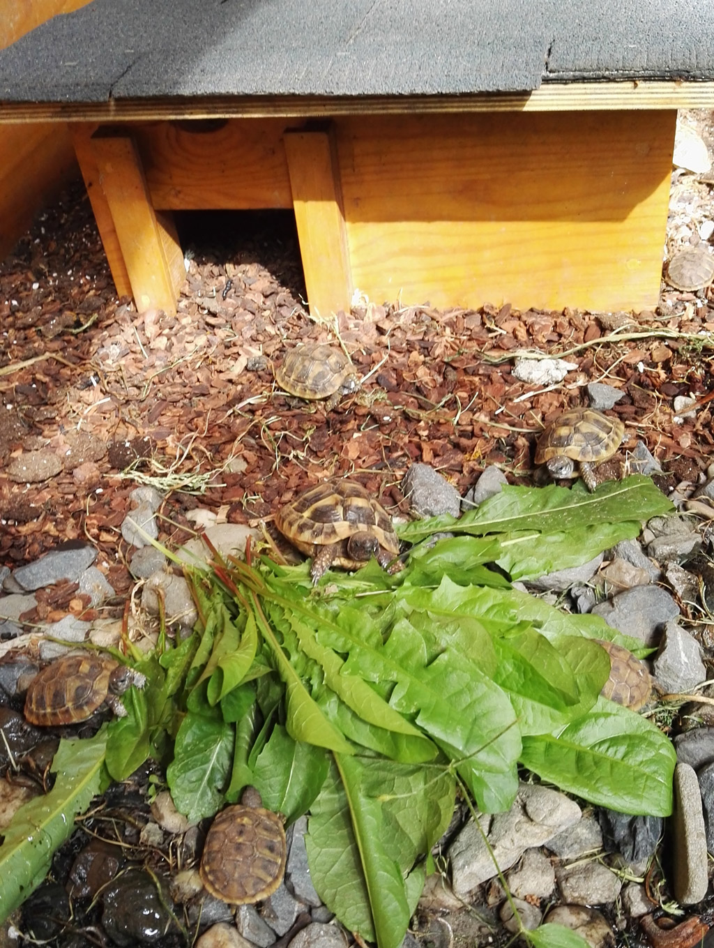 - Po výběhu a v domečku umístěte podestýlku nejlépe z kokosového vlákna (může být promíchaná s pískem). Dostatečná vrstva je taková, aby se želva mohla celá zahrabat.