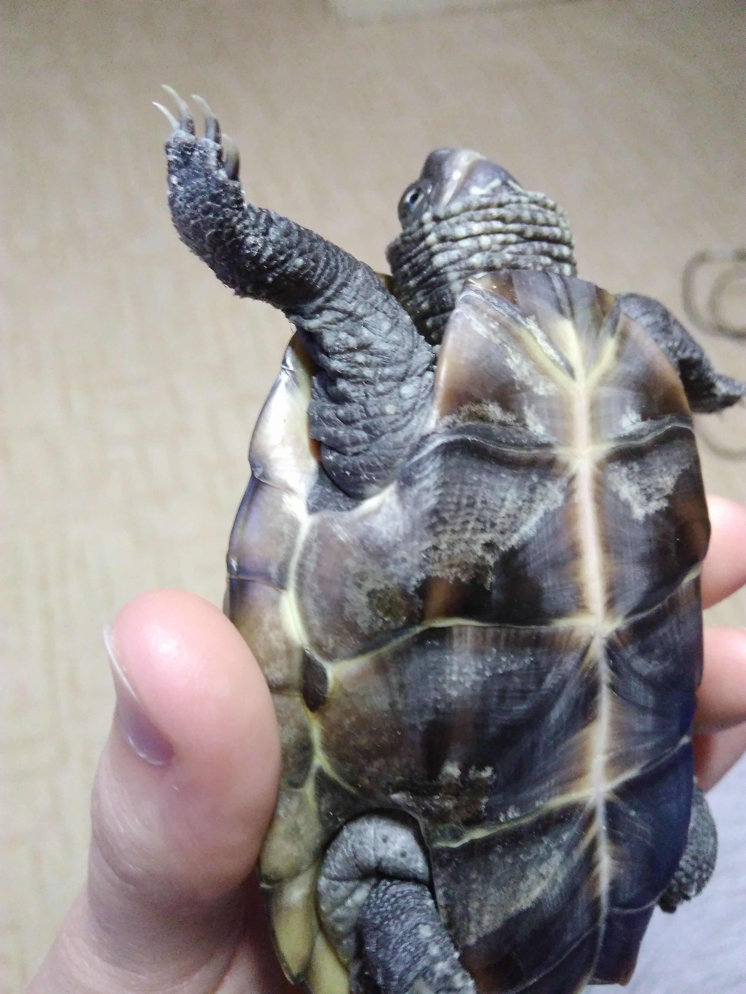 Dobrý večer, nedávno se mé želvě udělaly fleky na plastronu. V akváriu má velkou souš, pravidelně dáváme želvíka, má filtr topení i UVB lampu. Je aktivní, žere a krunýř na pohmat není měkký. Jedná se o houbu, či plíseň? Je nutná návštěva veterináře, nebo mám nejprve zkusit domácí léčbu? Želva roste, loupe se jí krunýř i kůže. Předem děkuji za odpověď. Blumtrittová.