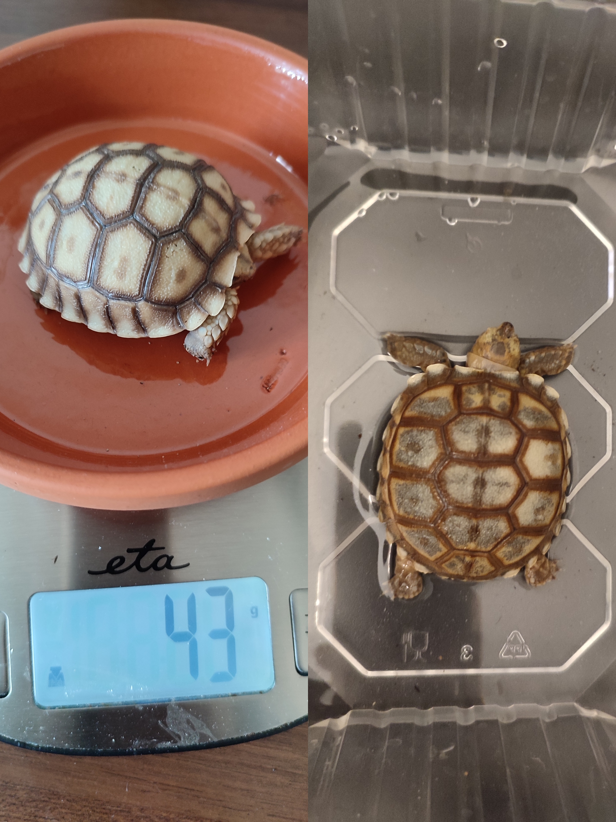Dobrý den, Máme mládě želvy ostruhaté, které nedávno ztmavl krunýř. Říkala jsem si, že by důvodem mohla být příliš vysoká teplota pod výhřevnou UV výbojkou (naměřená teplota cca 55° C) a že se želva spálila nebo ztmavla v důsledku příliš vysokého UV záření, je to možné? Výbojku jsme dali výš, teplota pod ní je cca 45° C. Jinak je želvička čilá, přijímá potravu, vápník dodáváme, ... Můžu se prosím zeptat o co se jedná a jak případně problém řešit? Přikládám foto před a po. Děkuji a přeji hezký den!